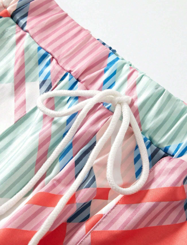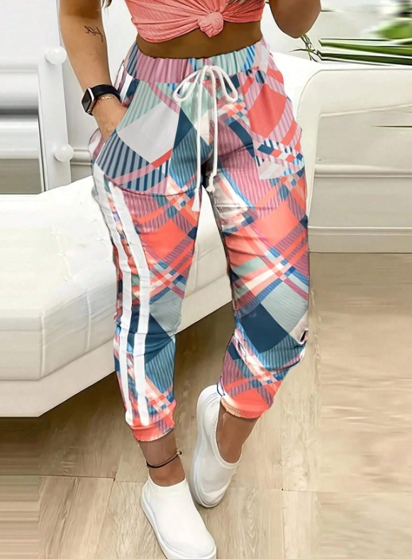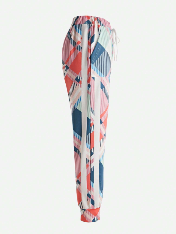 Cute Drawstring pants with Pockets and Side Stripes - Colorful Geometric Patterned Design. Don't forget when you purchase $30 or more on our website you can pay in payments of 4 or monthly!