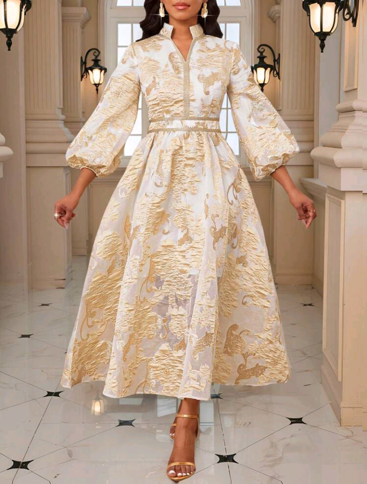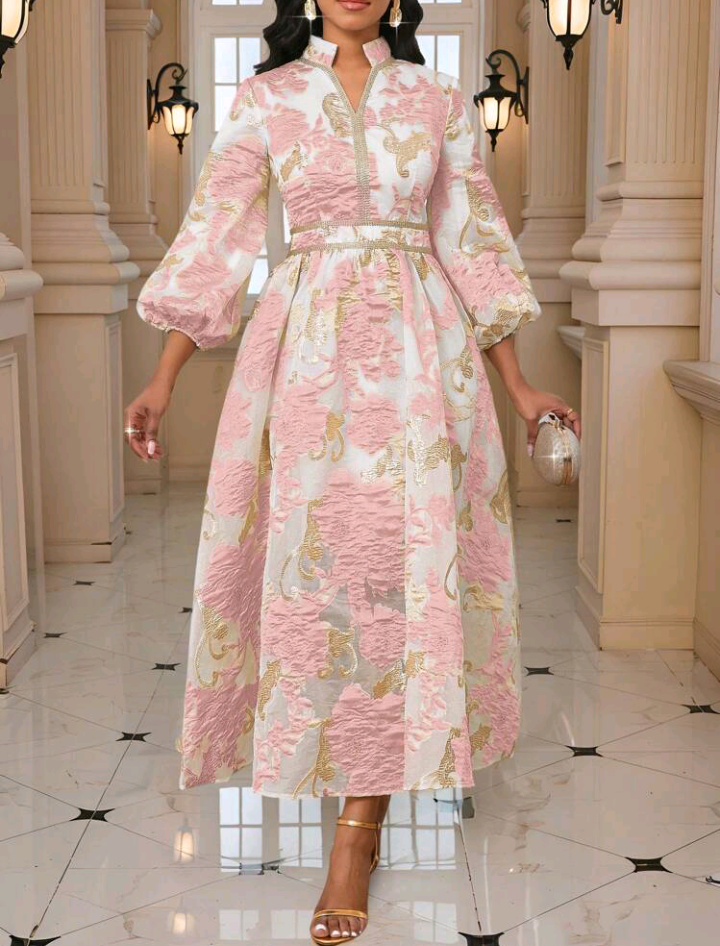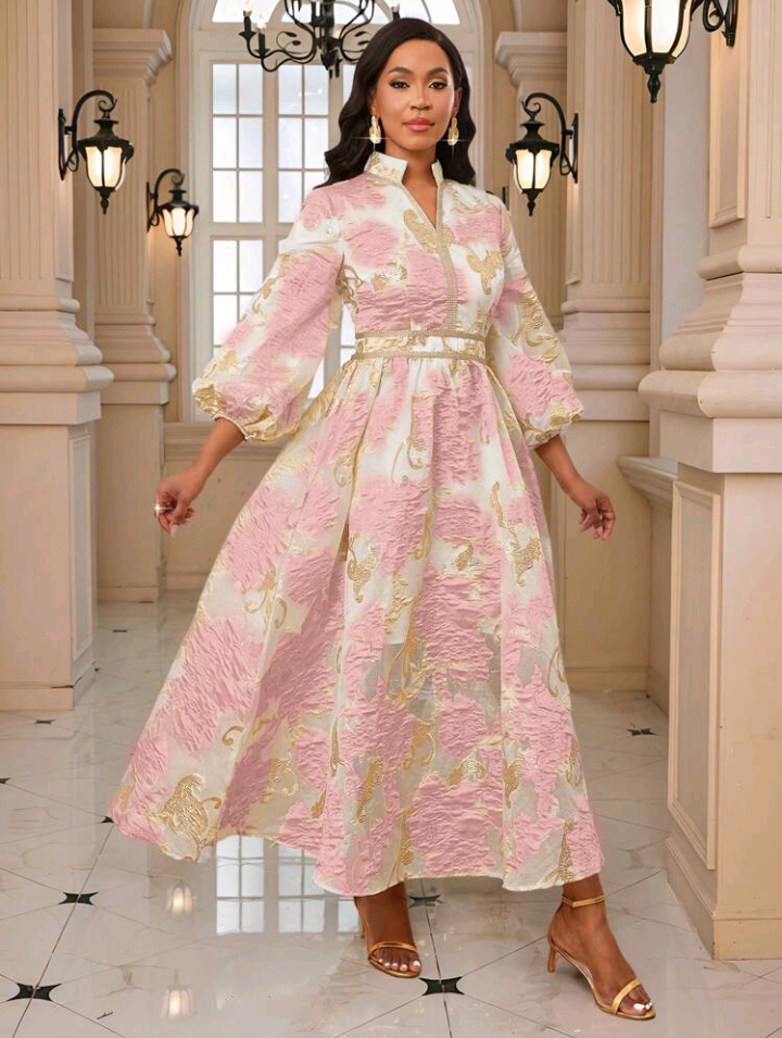 Very cute jacquard print dress in Gold and pink color. Pay with BUY NOW pay LATER and make payments in 4 and have your order shipped out with the first payment.
