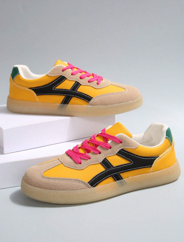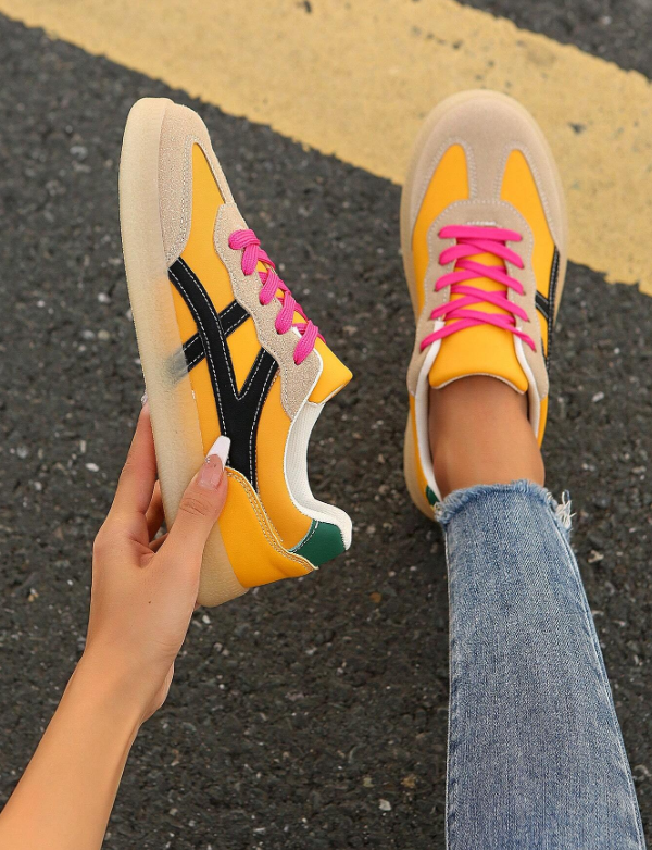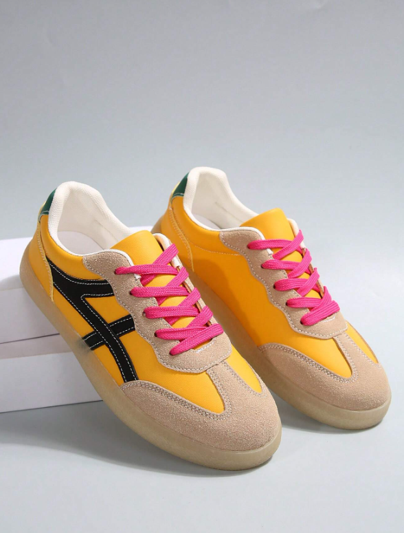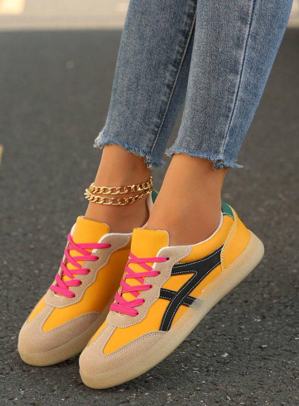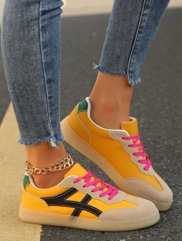 Cute Yellow/Pink athletic sneakers. Don't forget when you purchase $30 or more on our website you can pay in payments of 4 or monthly!